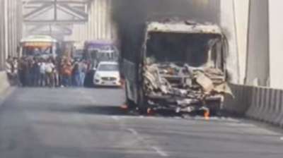 पटना के महात्मा गांधी सेतु पर बस में लगी भीषण आग, यात्रियों ने कूदकर बचाई जान