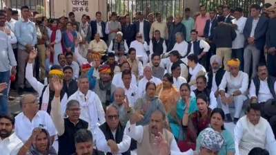 कांग्रेस के 6 विधायकों के निलंबन के बाद आज पार्टी की ओर से राजस्थान विधानसभा के बाहर धरना शुरू किया गया। नेता प्रतिपक्ष टीकाराम जूली के नेतृत्व में कांग्रेस विधायकों...