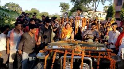 बिहार के मुजफ्फरपुर में शिक्षिका का ट्रांसफर होने पर भव्य विदाई समारोह का आयोजन किया गया. दुल्हन की तरह गाड़ी को सजाया गया और बैंड बाजे के साथ विदाई दी...