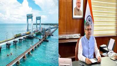 रेल मंत्री अश्विनी वैष्णव ने शुक्रवार को तमिलनाडु के रामेश्वरम में नए पंबन ब्रिज की कई तस्वीरें और वीडियो क्लिप शेयर कीं। यह भारत का पहला वर्टिकल लिफ्ट रेलवे सी...