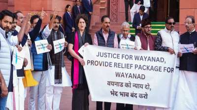केंद्र नहीं दे रहा वायनाड को विशेष पैकेज, प्रियंका गांधी व विपक्षी सांसदों ने किया विरोध प्रदर्शन
