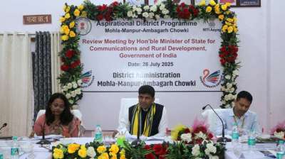 रायपुर : केंद्रीय राज्य मंत्री डॉ. पेम्मासानी चंद्र शेखर ने आज आदिवासी बाहुल्य मोहला-मानपुर-अंबागढ़ चौकी जिले के मानपुर विकासखंड का दौरा किया। इस दौरान उन्होंने कहा कि “दूरस्थ जनजातीय क्षेत्रों...