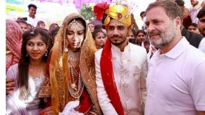 गुना में दिखी राहुल गांधी की सदगी, शादी समारोह में शामिल हुए, दूल्हा-दुल्हन के साथ खिंचाई तस्वीर