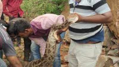अजगर ने बकरी का बच्चा निगला, वन विभाग की टीम ने किया रेस्क्यू, जांच के बाद जंगल में छोड़ा जाएगा