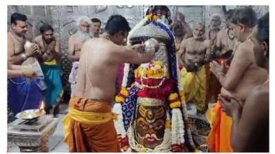 उज्जैन । विश्व प्रसिद्ध श्री महाकालेश्वर मंदिर मे आज चैत्र कृष्ण पक्ष की सप्तमी तिथि सोमवार तड़के भस्म आरती के दौरान चार बजे मंदिर के पट खुलते ही पण्डे पुजारी...