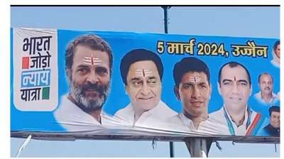 कल उज्जैन आएगी राहुल गांधी की यात्रा, होर्डिंग में त्रिपुंड में नजर आए कांग्रेस नेता