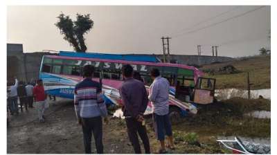 हाईवे निर्माण की वजह से बने ब्लैक स्पॉट, तेज रफ्तार डम्पर ने मारी बस को टक्कर
