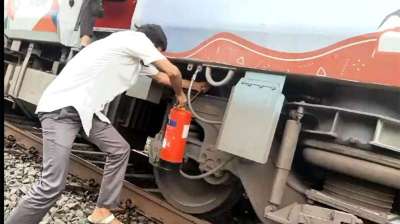 अमरकंटक एक्सप्रेस के एसी कोच के पहियों से उठा धुआं