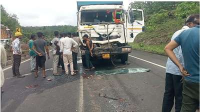 झिरा घाटी में सड़क पर खून ही खून, कंटेनर ने बाइक और कारों को चकनाचूर किया