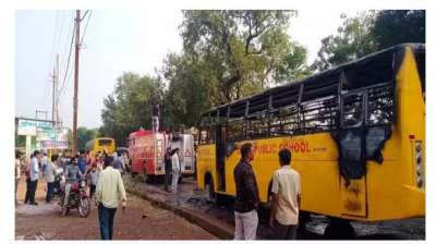 शॉर्ट सर्किट के चलते स्कूल बस में लगी आग, 12 बच्चों की बची जान, इस कंडीशन में था वाहन