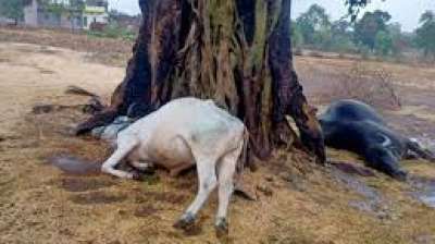 पोलमपल्ली में गाज गिरने से 12 मवेशियों की हुई मौत, बारिश के बीच मालिकों ने छोड़ दिए थे जानवर
