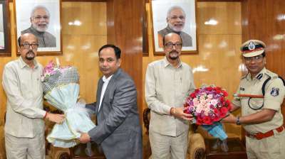 राज्यपाल डेका से रायपुर कलेक्टर एवं वरिष्ठ पुलिस अधीक्षक ने की सौजन्य मुलाकात