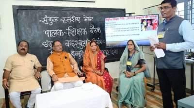 बच्चों ने मुख्यमंत्री को पोस्टर एक्सप्लेन कर दी ‘पालक-शिक्षक मीटिंग’ के एजेंडा की जानकारी