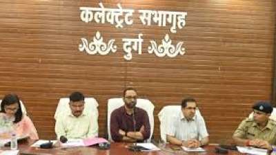 लोकसभा निर्वाचन 2024 हेतु संसदीय निर्वाचन क्षेत्र 07 दुर्ग के लिए मतदान दिवस 7 मई के 72 घंटे पूर्व कानून व्यवस्था के संबंध में प्रेक्षकगणों श्रीकेश लथकर, पुलिस प्रेक्षक अनुपम...