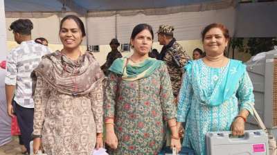 चेहरे पर लेकर मुस्कान, महिलाएं चली कराने मतदान