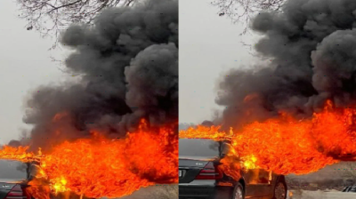 हाईवे पर दौड़ी ‘द बर्निंग कार’, मचा हडक़ंप, चालक की समझदारी से टली बड़ी दुर्घटना