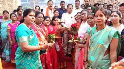 मुख्यमंत्री विष्णु देव साय का स्वागत किया जनप्रतिनिधियों एवं अधिकारियों ने