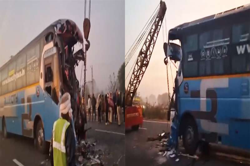 उज्जैन महाकाल दर्शन उपरांत कोहरे के कारण दिल्ली जाते समय राजस्थान मे हुई बस दुर्घटनाग्रस्त