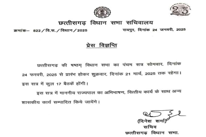 छत्तीसगढ़ विधानसभा बजट सत्र: कई महत्वपूर्ण प्रस्ताव पेश होने की संभावना, अधिसूचना जारी