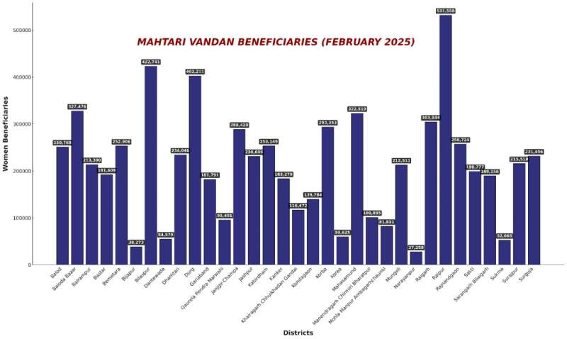 महिला एवं बाल विकास विभाग द्वारा दी गई जानकारी के अनुसार महतारी वंदना योजना के तहत फरवरी माह में बालोद जिले में 2,50,768 हितग्राहियों को 23.10 करोड़ रुपए, बलौदा बाजार जिले में 3,27,476 हितग्राहियों को 30.97 करोड़ रुपए और बलरामपुर जिले में 2,13,300 हितग्राहियों को 19.79 करोड़ रुपए की राशि प्रदान की गई। इसी प्रकार बस्तर जिले में 1,91,609 हितग्राहियों को 18 करोड़ 87 हजार रुपए, बेमेतरा जिले में 2,52,906 हितग्राहियों को 23.96 करोड़ रुपए और बीजापुर जिले में 38,273 हितग्राहियों को 3.67 करोड़ रुपए की राशि का वितरण किया गया। बिलासपुर जिले में 4,22,741 हितग्राहियों को 39.54 करोड़ रुपए, दंतेवाड़ा जिले में 54,579 हितग्राहियों को 5.16 करोड़ रुपए और धमतरी जिले में 2,34,046 हितग्राहियों को 21.76 करोड़ रुपए की सहायता दी गई। दुर्ग जिले में 4,02,211 हितग्राहियों को 38.33 करोड़ रुपए और गरियाबंद जिले में 1,81,791 हितग्राहियों को 16.75 करोड़ रुपए का भुगतान किया गया। गौरेला-पेंड्रा-मरवाही जिले में 95,401 हितग्राहियों को 8.72 करोड़ रुपए की सहायता राशि मिली।