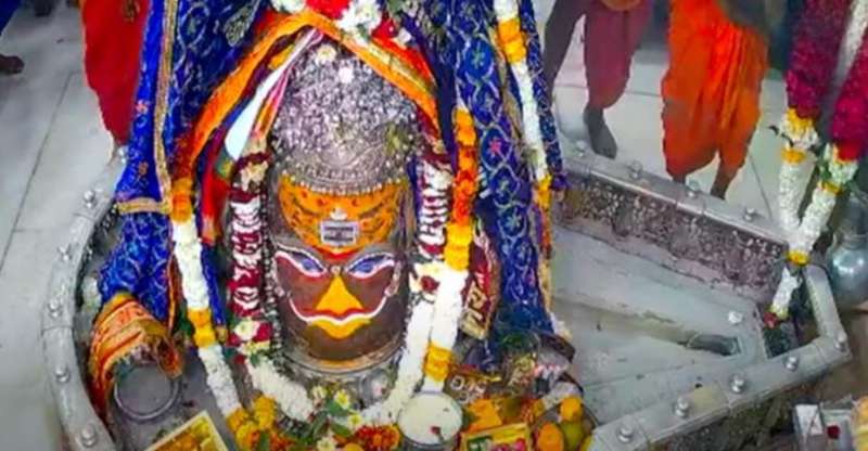 गर्म जल, पंचामृत से स्नान के बाद बाबा महाकाल को अर्पित की गई आंकड़े की माला
