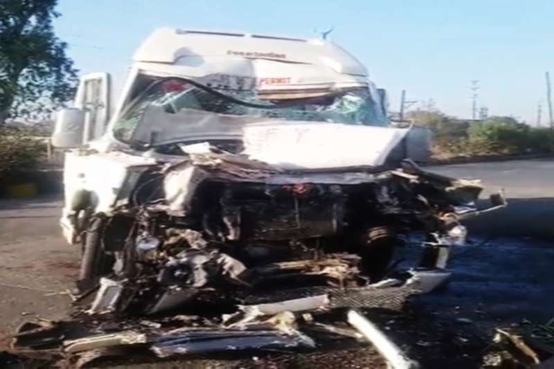 महाकुंभ जा रही ट्रैवल्स बस दुर्घटनाग्रस्त, वाहन के परखच्चे उड़ गए, लगभग 12 लोग थे सवार