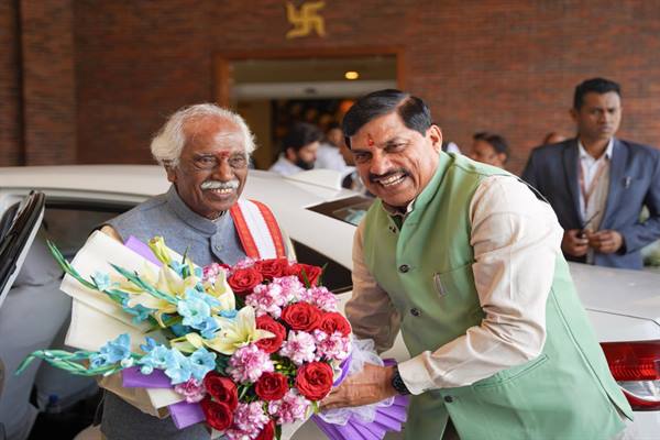 हरियाणा के राज्यपाल दत्तात्रेय का मुख्यमंत्री डॉ. यादव ने मुख्यमंत्री निवास पर किया स्वागत