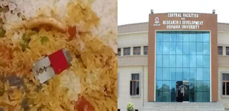 हैदराबाद की उस्मानिया यूनिवर्सिटी में मेस के भोजन में रेजर ब्लेड मिलने पर छात्रों ने किया विरोध प्रदर्शन
