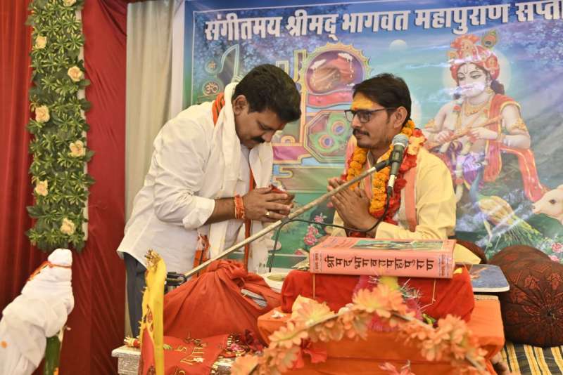 उपमुख्यमंत्री विजय शर्मा कबीरधाम जिला के ग्राम मदनपुर में आयोजित भागवत गीता महापुराण में हुए शामिल