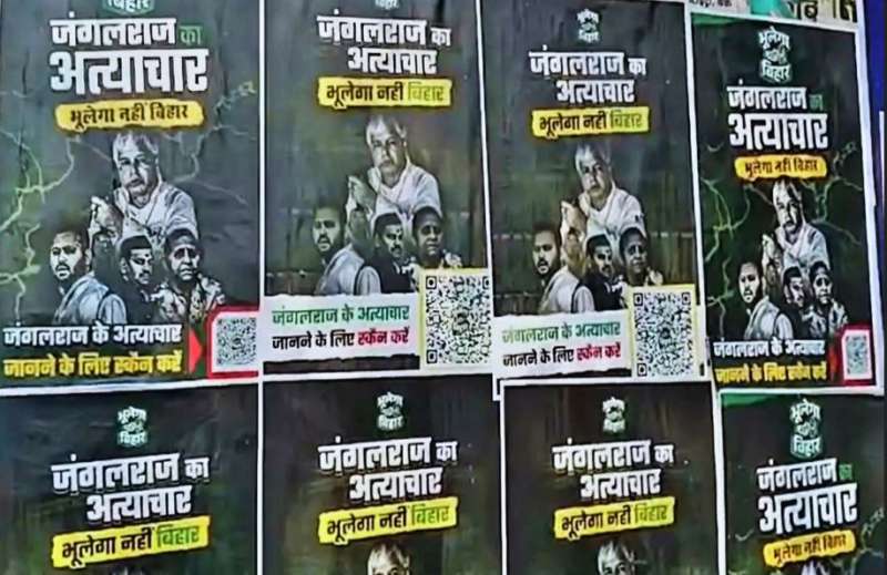 पटना में राजद के खिलाफ लगे पोस्टर, लालू के जंगलराज को दिखाया गया