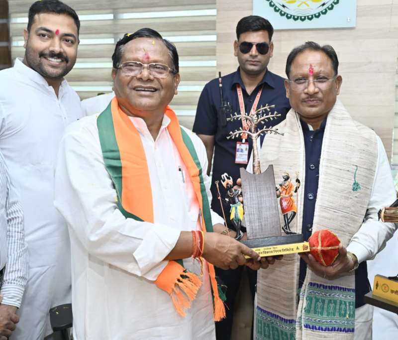 मुख्यमंत्री विष्णु देव साय छत्तीसगढ़ राज्य वन विकास निगम के अध्यक्ष रामसेवक पैकरा के पदभार ग्रहण समारोह में हुए शामिल