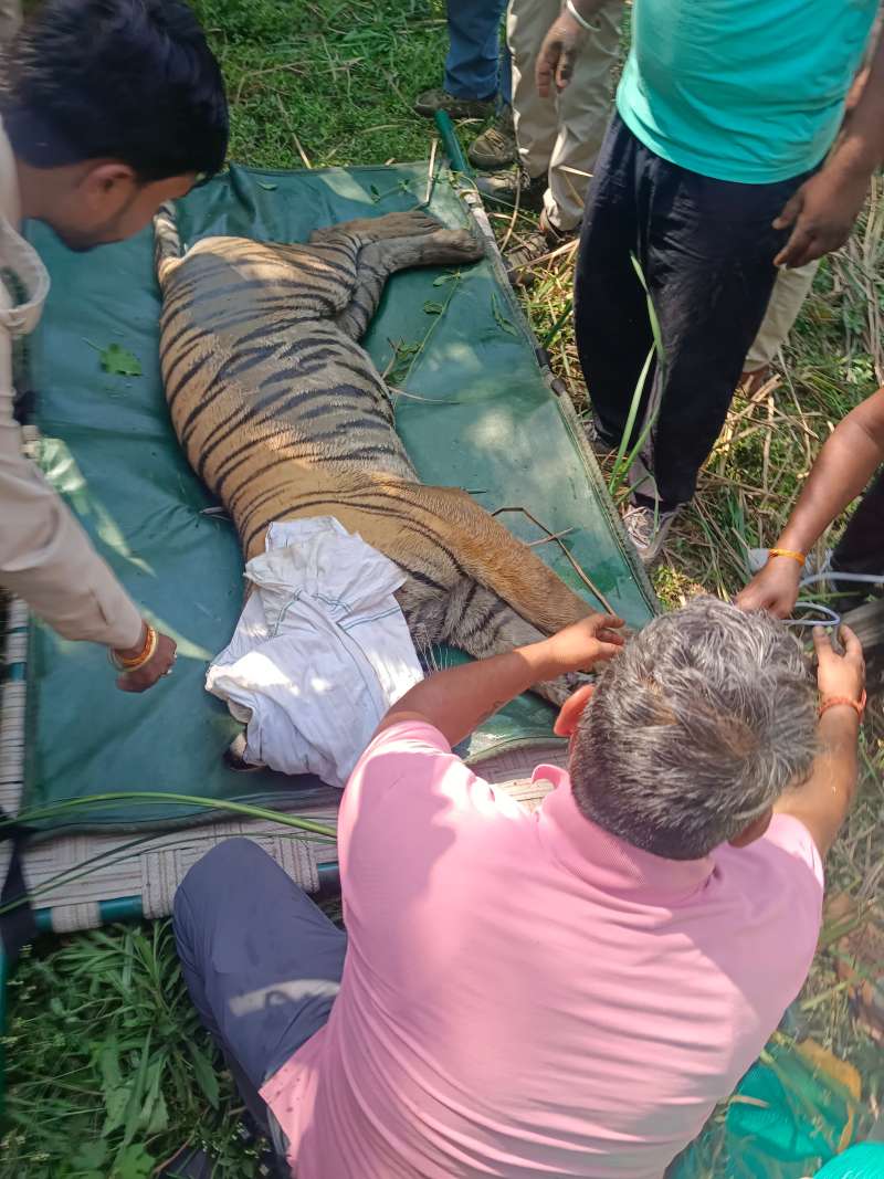 कुदवा रेंज में हुई घटना के बाद बाघ को किया रेस्क्यू