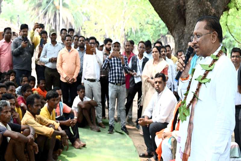 मुख्यमंत्री साय ने इमली के पेड़ के नीचे चौपाल लगाई और खाट पर बैठकर ग्रामीणों से बात की। इस दौरान उन्होंने कहा कि मैं भी प्रदेश के आदिवासी क्षेत्र जशपुर से आदिवासी हूं, मुझे अपने लोगों के बीच आकर अच्छा लग रहा है। हम आपसे चर्चा करने आए हैं कि सरकार की जनकल्याणकारी योजनाओं का लाभ आप तक पहुंच रहा है या नहीं। इमली के पेड़ के नीचे आयोजित कार्यक्रम में मुख्यमंत्री को अपने बीच पाकर ग्रामीण बहुत खुश हुए और उनके सिर पर गौर मुकुट, स्थानीय प्राकृतिक संसाधन महुआ आम के पत्तों की माला और छिंद के पत्तों से बना गुलदस्ता पहनाकर उनका स्वागत किया।