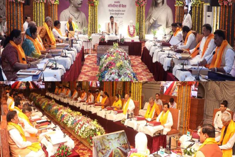 इंदौर: मध्यप्रदेश की सांस्कृतिक और प्रशासनिक धरोहर मां अहिल्या बाई होल्कर की 300वीं जयंती के अवसर पर मुख्यमंत्री डॉ. मोहन यादव की अध्यक्षता में इंदौर के राजवाड़ा में विशेष कैबिनेट बैठक आयोजित की गई। इस ऐतिहासिक बैठक में महिला सशक्तिकरण, किसानों की भलाई, शहरी विकास, स्वच्छता मिशन और धार्मिक-सांस्कृतिक पुनर्जागरण से जुड़ी कई महत्वपूर्ण योजनाओं और प्रस्तावों को मंजूरी दी गई।
