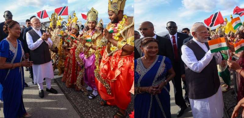 पीएम नरेंद्र मोदी पहली बार आधिकारिक दौरे पर त्रिनिदाद और टोबैगो पहुंचे है। पियारको इंटरनेशनल एयरपोर्ट पर उनका शानदार स्वागत हुआ। पीएम कमला बिसेसर, 38 मंत्री और चार सांसदों ने पीएम मोदी का गार्ड ऑफ ऑनर के साथ स्वागत किया। यह दौरा इसलिए भी खास है क्योंकि 1999 के बाद किसी पीएम मोदी का त्रिनिदाद का पहला द्विपक्षीय दौरा है। यह दौरा कमला परसाद-बिसेसर के न्योते पर हुआ है।