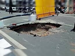 यह घटना में मेघदूत गार्डन के सामने से स्कीम नंबर 54 की तरफ जाने वाले मार्ग पर हुई थी। गड्ढे कोई जनहानि नहीं हुई, लेकिन सोशल मीडिया पर गड्ढे को लेकर लोगों ने तरह-तरह की प्रतिक्रिया दी। गड्ढे में गिरकर कोई वाहन चालक हादसे का शिकार न हो जाए, इसलिए उसके आसपास ट्रैफिक पुलिस ने बैरिकेड लगा दिए थे। रहवासियों ने अफसरों को बताया था कि सुबह के समय जिस हिस्से में सड़क धंसी थी, वहां पर पानी का रिसाव हो रहा था। इसे लेकर मेयर पुष्य मित्र भार्गव ने जांच के आदेश दिए थे। जांच में सामने आया कि एयरटेल कंपनी ने बिना नगर निगम की अनुमति के केबल लाइन डाली थी, जिससे सड़क पर गड्ढा बन गया। नगर निगम आयुक्त ने एयरटेल पर चार लाख रुपये का जुर्माना लगाया है। मेयर ने कहा कि कंपनी के खिलाफ एफआईआर करने के निर्देश भी दिए गए है ताकि भविष्य में कोई भी कंपनी बिना नगर निगम की अनुमति कार्य नहीं करेगी।
