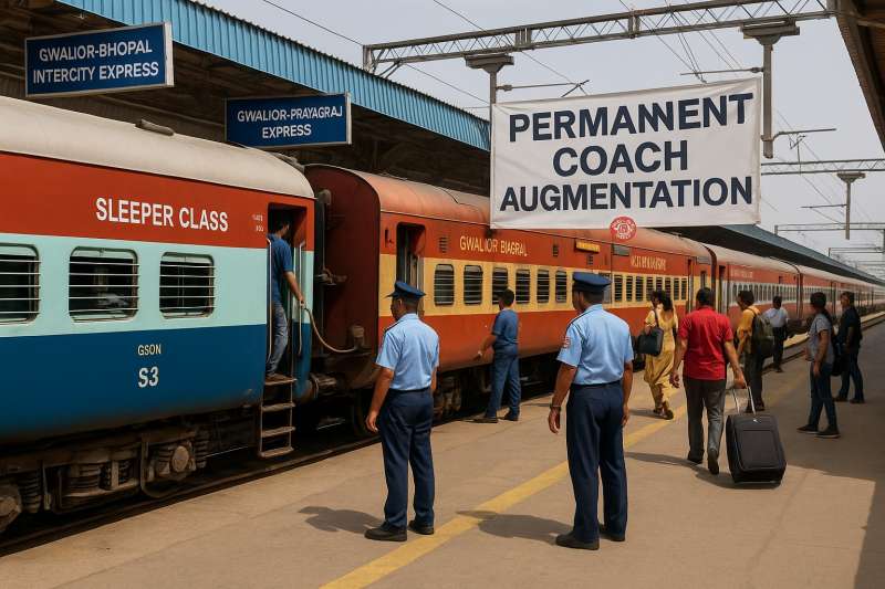 ग्वालियर-भोपाल इंटरसिटी एक्सप्रेस और ग्वालियर-प्रयागराज एक्सप्रेस में स्थायी कोच वृद्धि