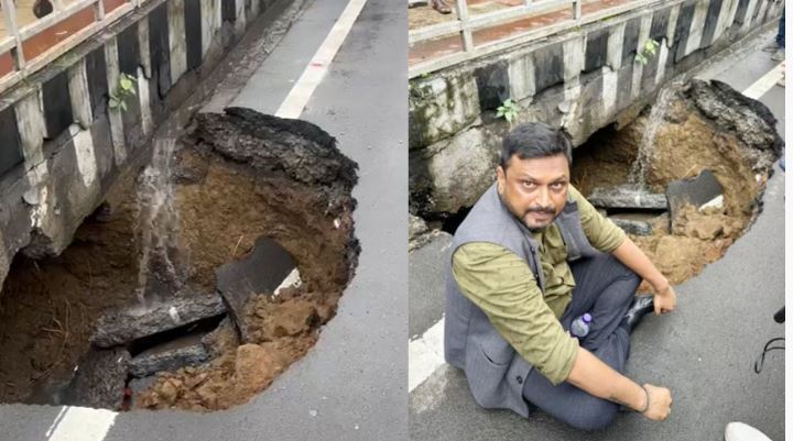 बोर्ड ऑफिस चौराहा में बारिश ने खोली सड़क की खामियाँ, लगभग 10 फीट गड्ढा