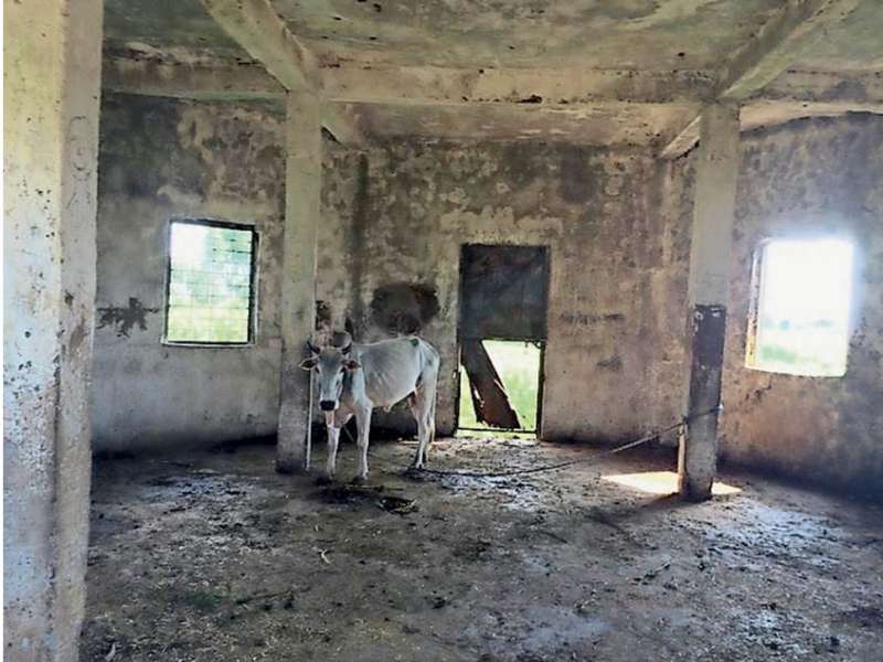 सीहोर। सीहोर जिले के आष्टा ब्लॉक में एक प्राथमिक स्कूल भवन पर दबंग ने कब्जा कर उसे भैंसों का बाड़ा बना लिया। भवन के एक कमरे में पानी रिसने की समस्या और अधिक बच्चे पंजीकृत होने के कारण अब स्कूल एक मंदिर परिसर में संचालित हो रहा है। हैरानी की बात यह भी है कि स्कूल परिसर में शौचालय तक नहीं है। इसके चलते स्कूल शिक्षक ने प्लास्टिक की पन्नी से अस्थायी शौचालय बना रखा है।