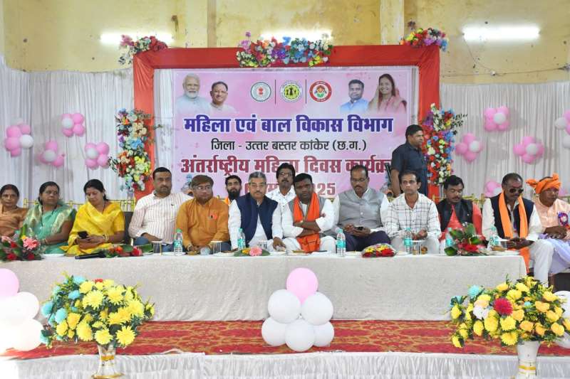उत्तर बस्तर कांकेर : अंतरराष्ट्रीय महिला दिवस के अवसर पर शनिवार 08 मार्च को कांकेर के नया कम्युनिटी हाल में महिला एवं बाल विकास विभाग द्वारा महिलाओं को सम्मान किया गया। कार्यक्रम में कांकेर विधायक आशाराम नेताम, नगर पालिका अध्यक्ष अरुण कौशिक, उपाध्यक्ष उत्तम यादव शामिल हुए। इस अवसर महिला केंद्रित विभिन्न कार्यक्रमों का आयोजन किया गया। बाल विवाह विरोधी शपथ दिलायी गई। श्रेष्ठ कार्य करने वाली शासकीय तथा गैर शासकीय महिलाओं, बालिकाओं को सम्मानित किया गया। आंगनबाड़ी कार्यकर्ताओं को गैस कनेक्शन वितरित किए गए। छत्तीसगढ़ महिला कोष अंतर्गत लगभग 40 लाख रुपए की ऋण राशि भी वितरित की गई। इस अवसर पर जिला पंचायत सदस्य, जनपद अध्यक्ष, पार्षदों, जनपद सदस्यों, सरपंचों सहित बड़ी संख्या में नवनिर्वाचित जनप्रतिनिधियों, महिला स्व सहायता समूहों की सदस्यों तथा अन्य ग्रामीण महिलाओं ने भाग लिया।