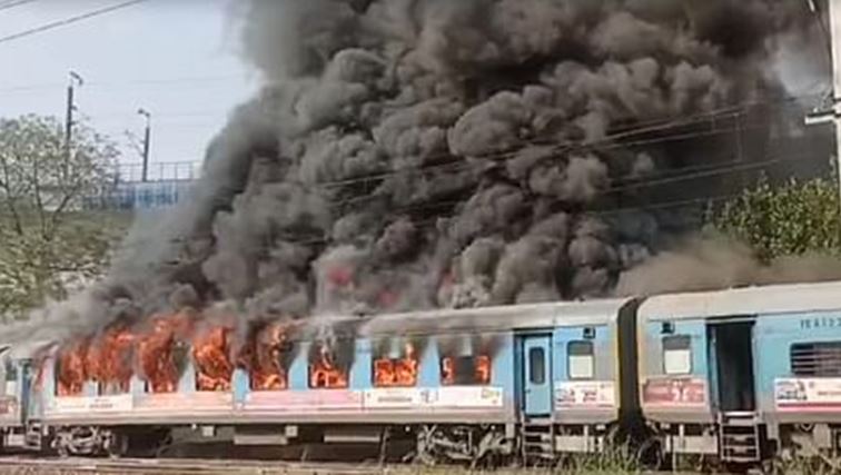 दिल्ली : ताज एक्सप्रेस ट्रेन में लगी भीषण आग