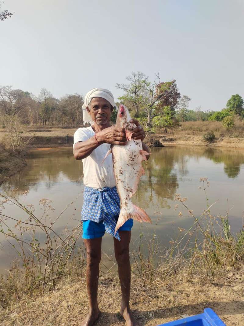 दंतेवाड़ा जिले के ग्राम मैलावाड़ा के प्रगतिशील कृषक जयराम कश्यप ने मत्स्य पालन के माध्यम से अपनी आर्थिक स्थिति को सुदृढ़ करते हुए अन्य कृषकों के लिए प्रेरक बन गए है। पारंपरिक खेती से सीमित आय प्राप्त करने वाले जयराम ने 2017 में अपनी पुश्तैनी भूमि पर तालाब बनाकर मत्स्य पालन शुरू किया। उन्होंने मत्स्य विभाग के मार्गदर्शन में इन योजनाओं का लाभ उठाते हुए अपनी सवा एकड़ भूमि पर तालाब का निर्माण कराया और 2023-24 में 25 डिसमिल भूमि में पौंड-लाइनर भी स्थापित किया।