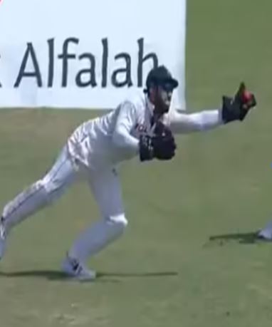 पाकिस्तान क्रिकेट टीम ने बांग्लादेश के खिलाफ खेले जा रहे पहले टेस्ट मैच में पहली पारी में विशाल स्कोर खड़ा किया है। रावलपिंडी में खेले जा रहे मैच में मेजबान टीम को यहां तक पहुंचाने में अहम रोल निभाया मोहम्मद रिजवान की शानदार पारी ने। बल्ले से छाने के बाद रिजवान विकेटकीपिंग में भी छा गए। इस मैच के तीसरे दिन शुक्रवार को उन्होंने एक शानदार कैच लपका।