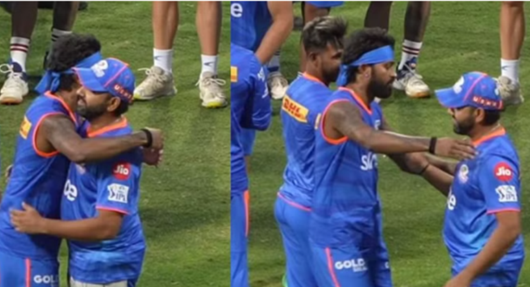 मुंबई इंडियंस के कप्तान हार्दिक पांड्या और रोहित शर्मा का एक-दूसरे लगया गले