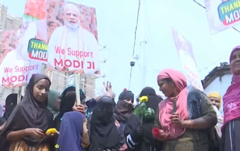 दिल्ली में भी वक्फ विधेयक के समर्थन में मुस्लिम महिलाएं उतरीं। महिलाओं ने तख्तियां पकड़ रखी हैं। इनमें लिखा है कि 'वक्फ संपत्ति की आमदनी उसके हकदार तक पहुंचाने और वक्फ बोर्ड में महिलाओं व पिछड़े मुसलमानों की हिस्सेदारी देने के लिए मोदी जी का शुक्रिया।'