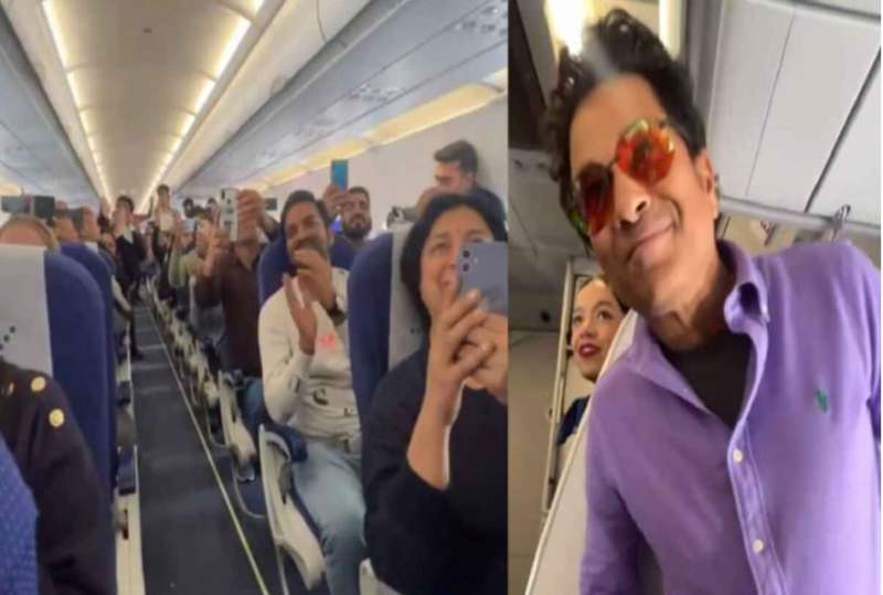 फ्लाइट में यात्रियों ने किया सचिन तेंदुलकर का स्वागत