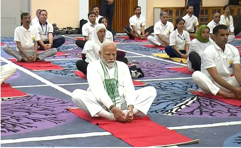 विश्व आज अंतरराष्ट्रीय योग दिवस मना रहा है। प्रधानमंत्री नरेंद्र मोदी ने श्रीनगर के शेर-ए-कश्मीर इंटरनेशनल कॉन्फ्रेंस सेंटर (SKICC) में योगाभ्यास किय। 10वें अंतरराष्ट्रीय योग दिवस के मौके पीएम मोदी ने वज्रासन से लेकर बलासन, भुजंगासन, शलभासन और उत्तानपादासन तक योग की कई क्रियाएं कीं।