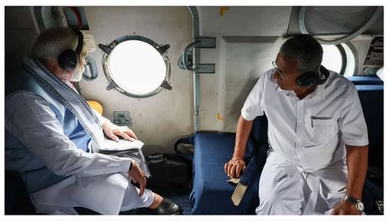 हवाई सर्वे के दौरान सीएम पी विजयन भी रहे पीएम मोदी के साथ