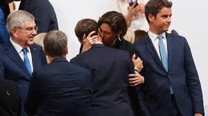पेरिस । फ्रांस के राष्ट्रपति इमैनुएल मैक्रों (46) का एक किस इन दिनों फ्रांस में चर्चा का विषय बना हुआ है। पेरिस ओलंपिक 2024 के उद्घाटन समारोह में मैक्रों ने अपनी खेल मंत्री को किस किया है। इस अंतरंग किस के बारे में पूरे शहर में चर्चा जोरों पर है।