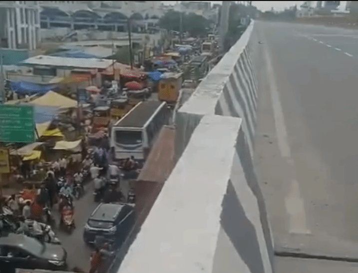 चेन्नई। तमिलनाडु के होसुर में एक फ्लाईओवर का स्लैब अपनी जगह से खिसक गया। इससे सडक़ पर करीब तीन किमी लंबा जाम लग गया। वाहनों को सर्विस रोड का इस्तेमाल करने के लिए कहा गया है। यह फ्लाईओवर बेंगलुरु-चेन्नई नेशनल हाईवे पर बना है और कर्नाटक की राजधानी बेंगलुरु से सिर्फ 40 किमी दूर है। सुरक्षा कारणों से फ्लाईओवर पर बेंगलुरु जाने वाले वाहनों को रोक दिया गया। पुलिस ने बताया कि एक्सपट्र्स का एक पैनल होसुर फ्लाईओवर की जांच करेगा।
